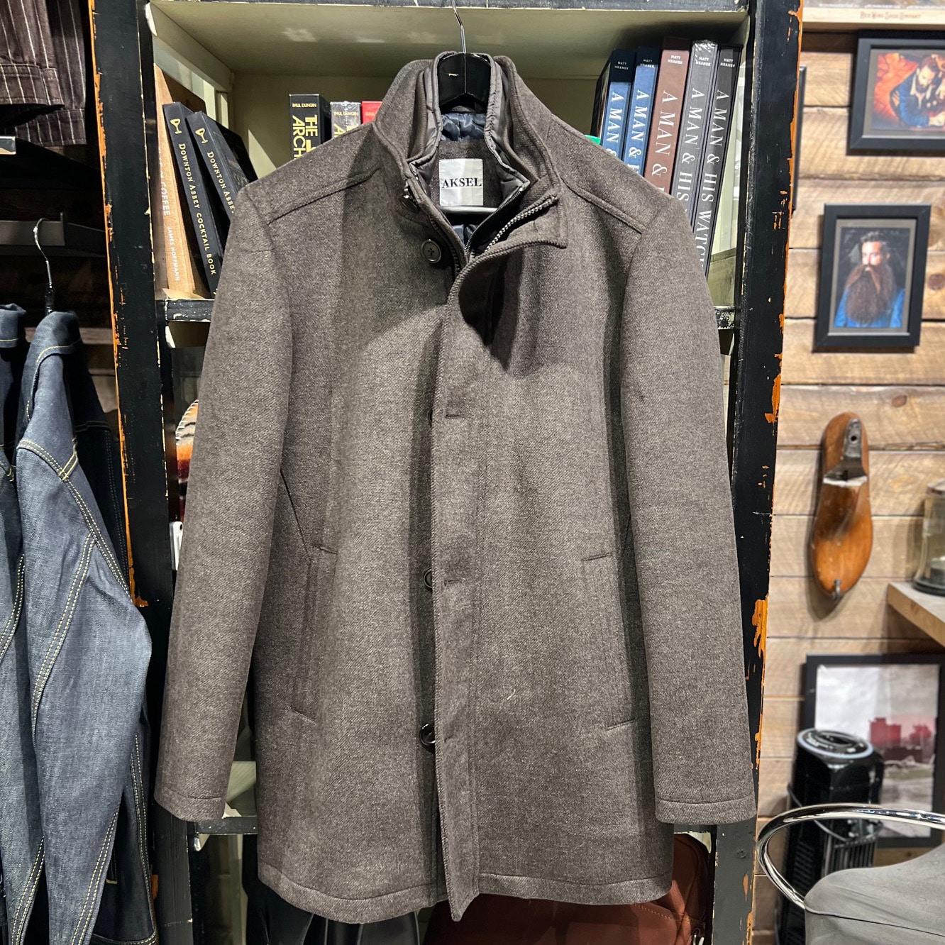 Meleret uldjakke fra danske Aksel. Lavet i et blødt uldmix som giver en behagelig komfort, imens den holder dig varm. Lavet med stand-up collar og knaplukning, ideel til efteråret.