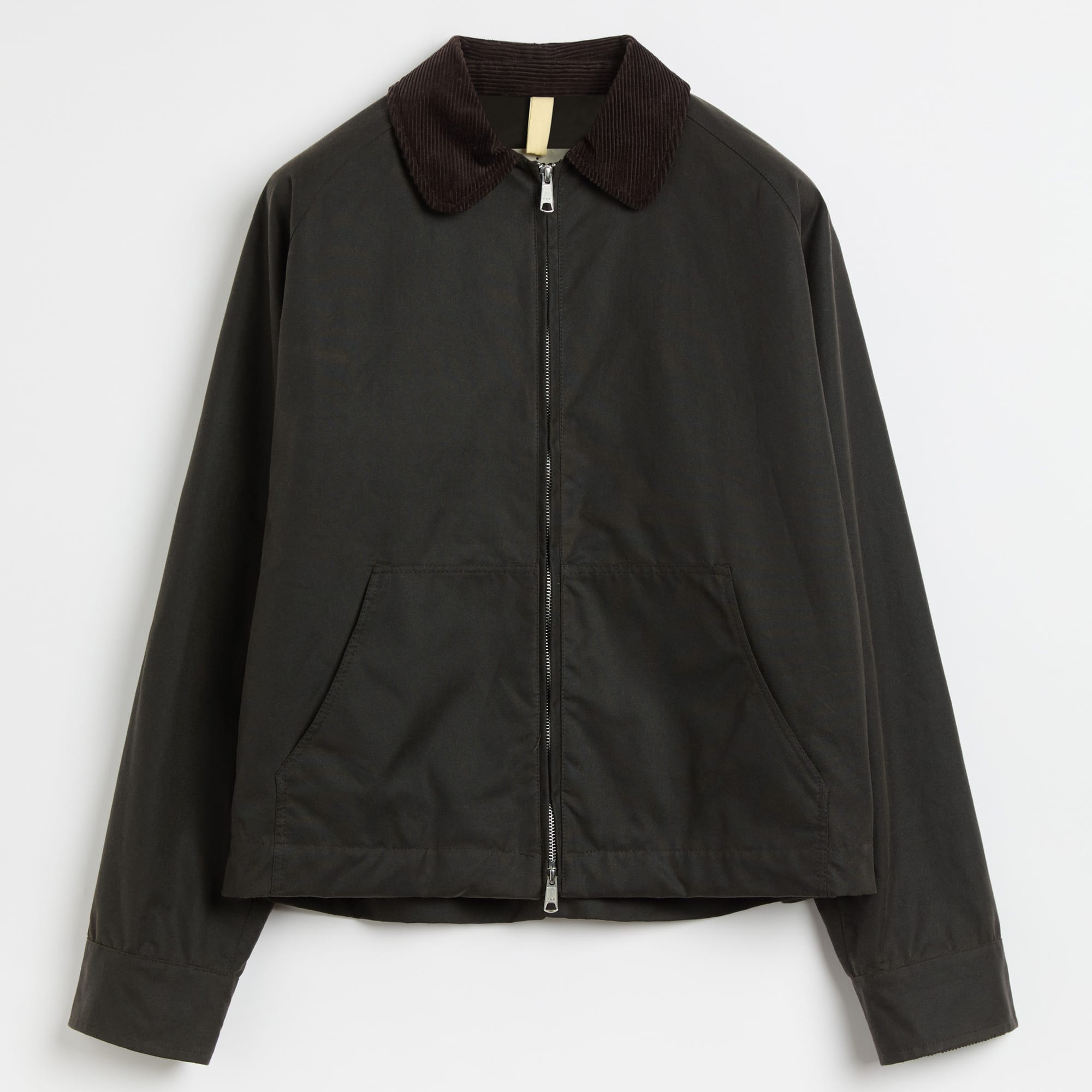 Ensfarvet vokset jakke fra svenske Brixtol Textiles. Lavet i en vokset bomuldsmetervarer, som giver jakken et flot look og gør den mere vandafvisende. Lavet hos Halley Stevenson i England.