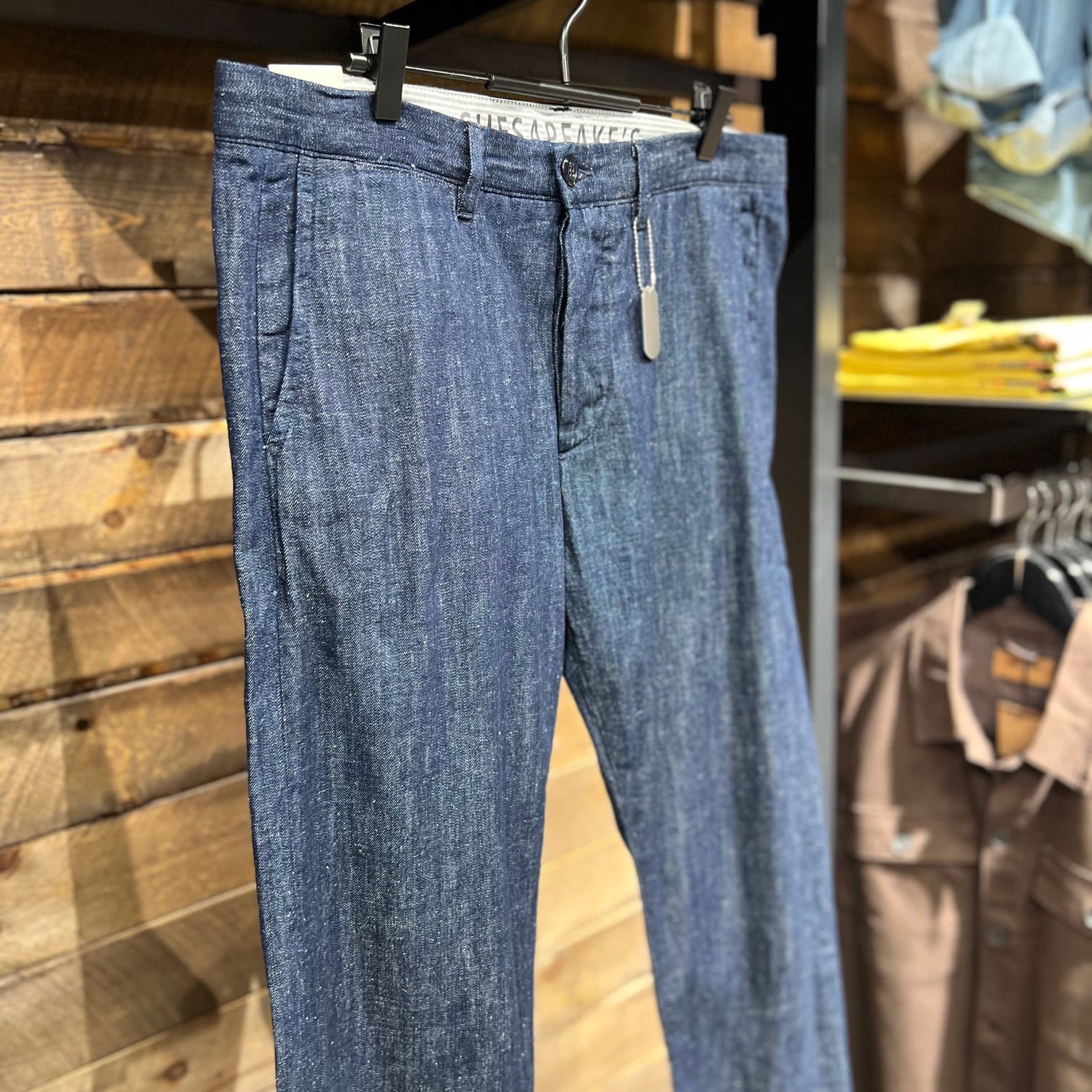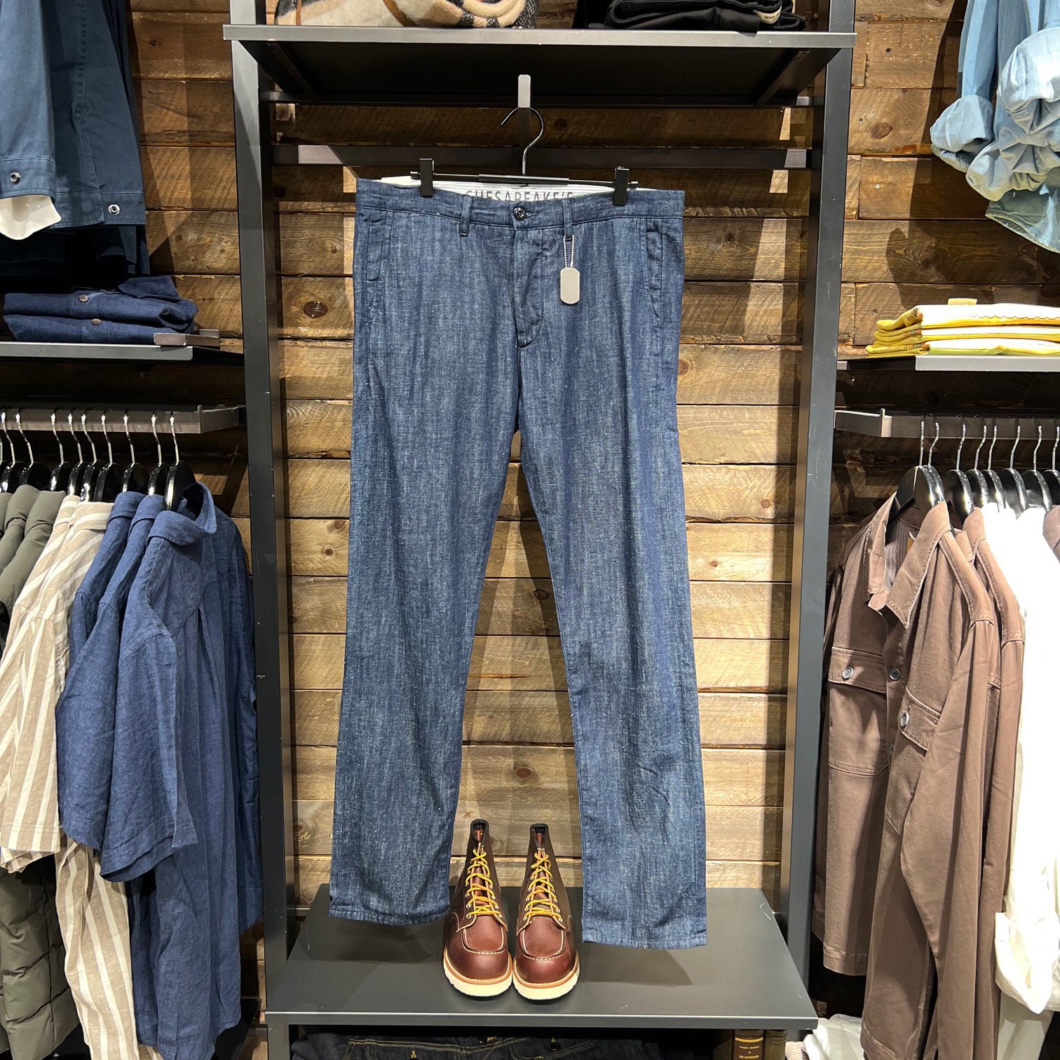 Ensfarvet chino med fra italienske Chesapeake. Lavet i en let bomuldsmetervare med neppy denim, der sammen med indfarvningen, giver chinoen et super flot look.