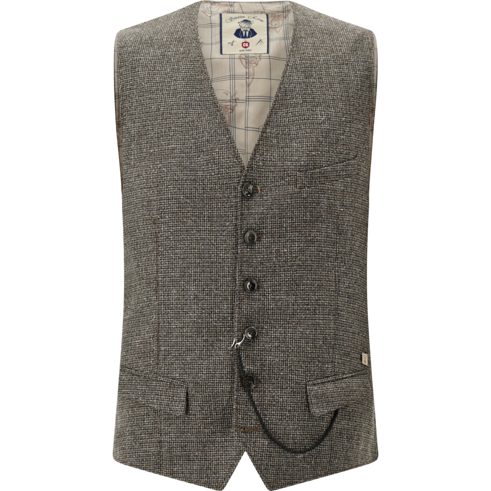 Mønstret ulden vest fra tyske Club of Gents. Lavet i et uld mix, som gør den ideel til et efterår og at bruge som lag på lag. Brug den gerne med en mørk skjorte eller rullekrave strik under.