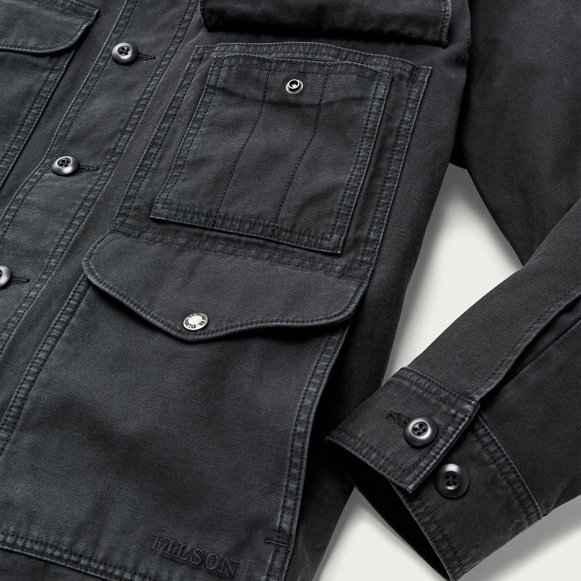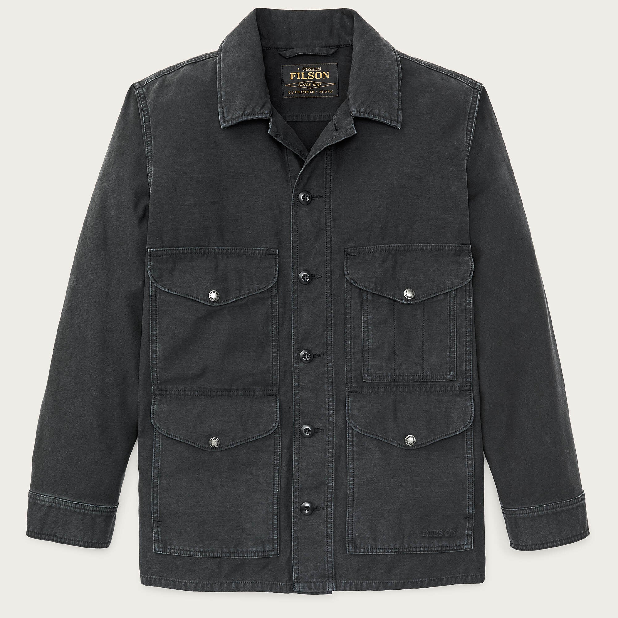 Ensfarvet cruiser jakke fra amerikanske Filson 1897. Lavet i en 9,5oz bomuldskvalitet og efter lavet den patenterede facon fra den originale Cruiser jakke fra 1914. Denne lavet i en lettere udgave, uden for og en i let metervare. Ideel til overgangsprioderne og på de varmere dage.