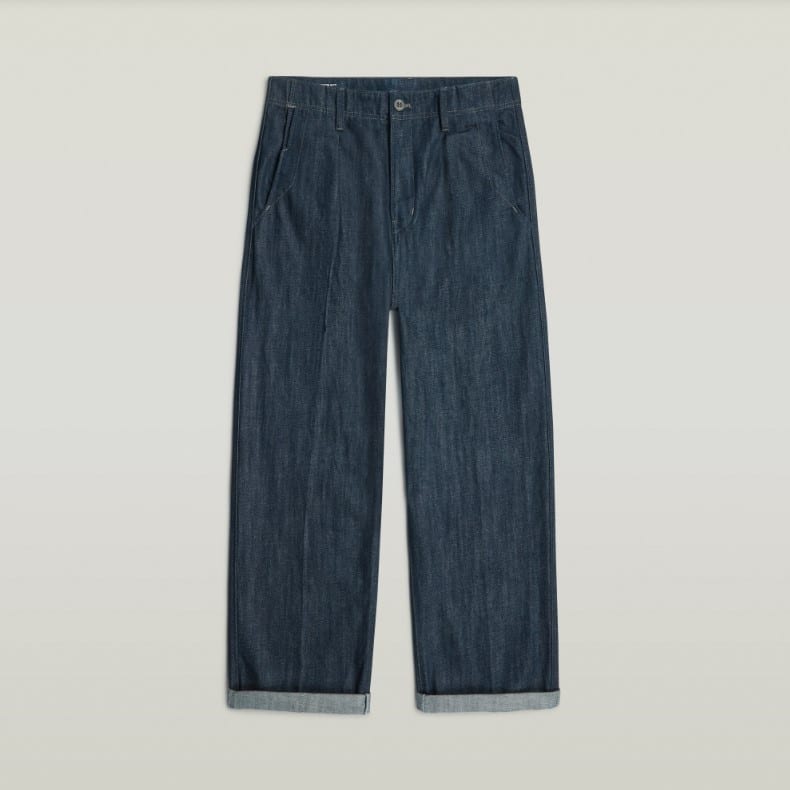 Ensfarvet raw denim chinos fra hollandske G-Star Raw. Lavet i en kraftigere bomuldsmetervare, som både giver bukserne et super cool look, imens de kun bliver flottere med tiden.