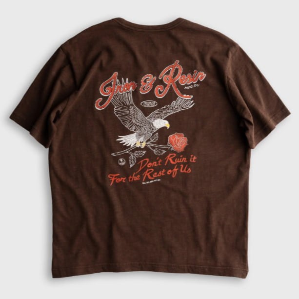Kortærmet printet t-shirt fra amerikanske Iron & Resin. Lavet af en blød, økologisk bomuld med print på brystet. Brug den gerne under en denim skjorte, eller en overshirt, for ekstra kulør.
