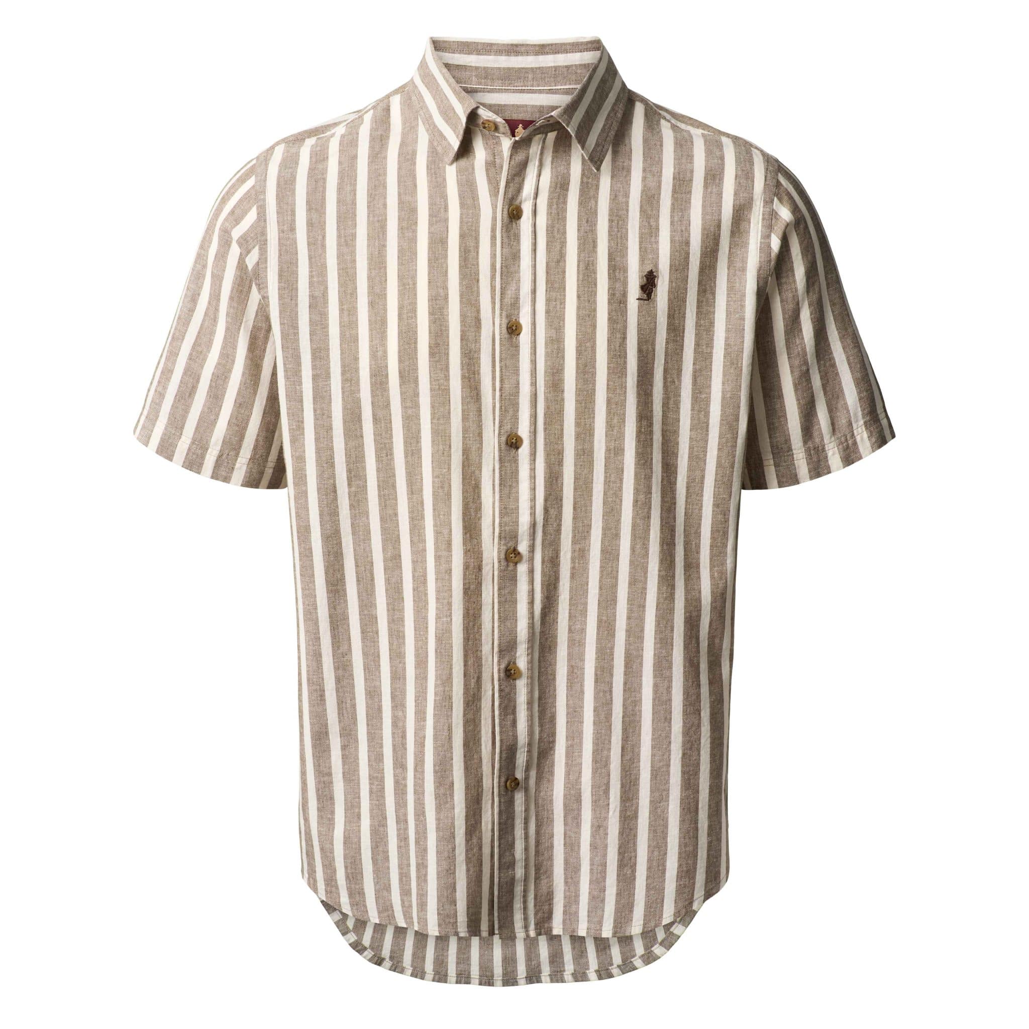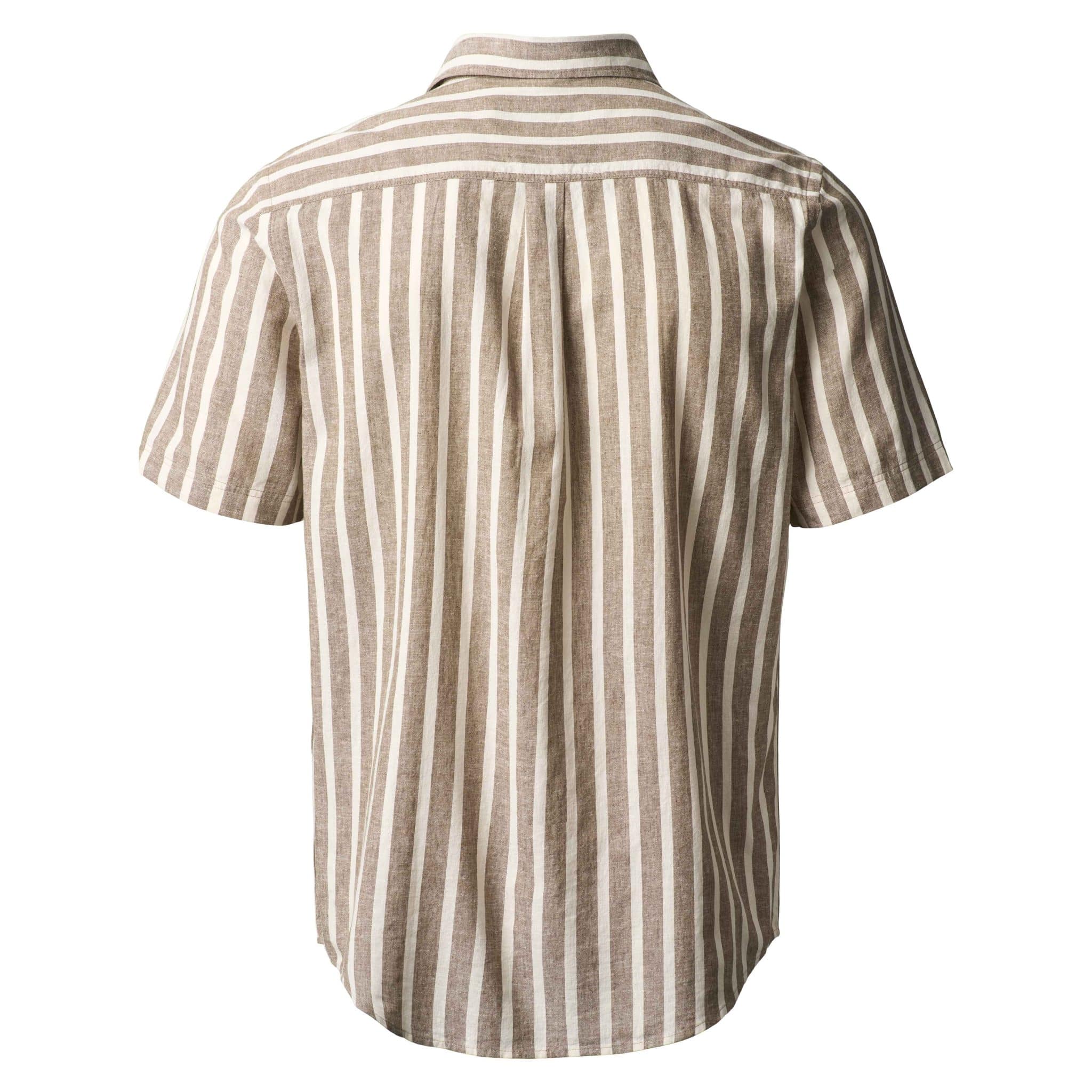 Stribet kortærmet skjorte fra italienske MCS. Lavet i en super let og behagelig kvalitet af bomuld og hør, der gør den ideel til brug om foråret