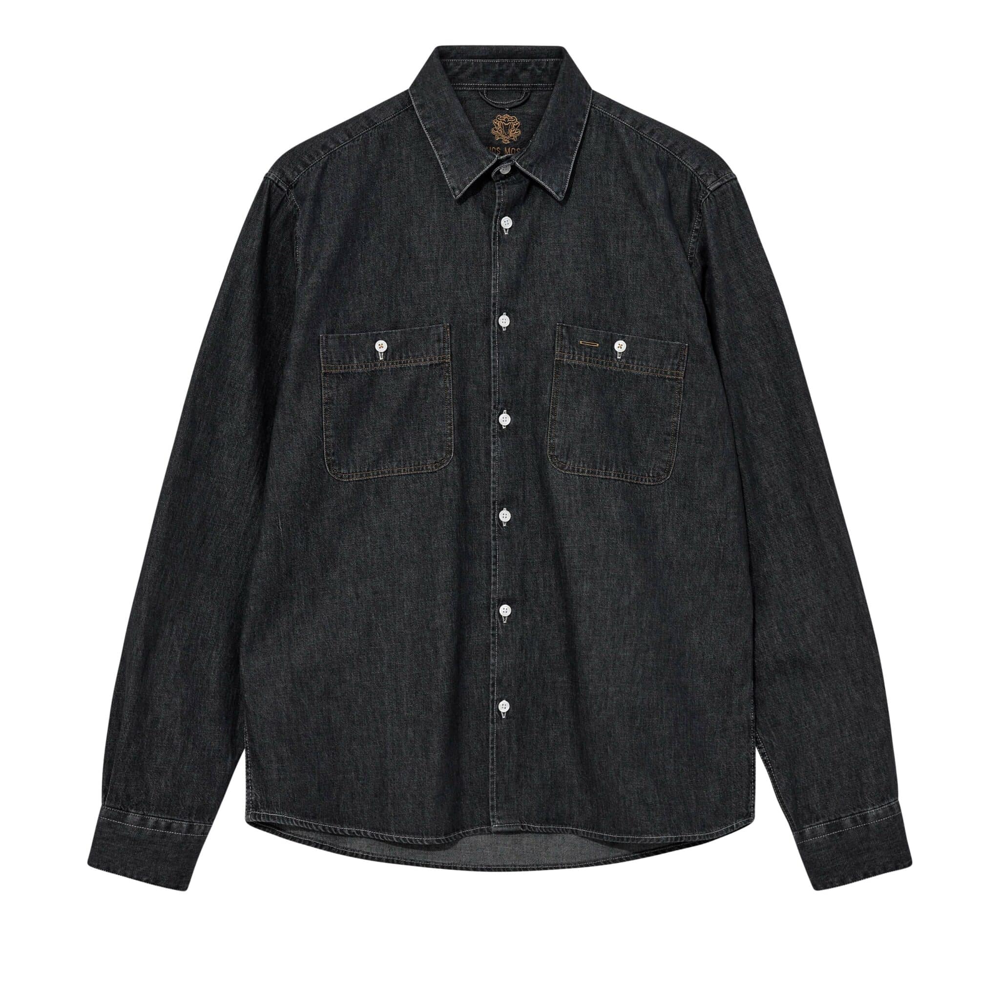 Ensfarvet denim skjorte fra danske Mos Mosh Gallery. Lavet i et let og blød bomuld, der giver en behagelig komfort. Ideel med en printet tee under sammen med en chino.