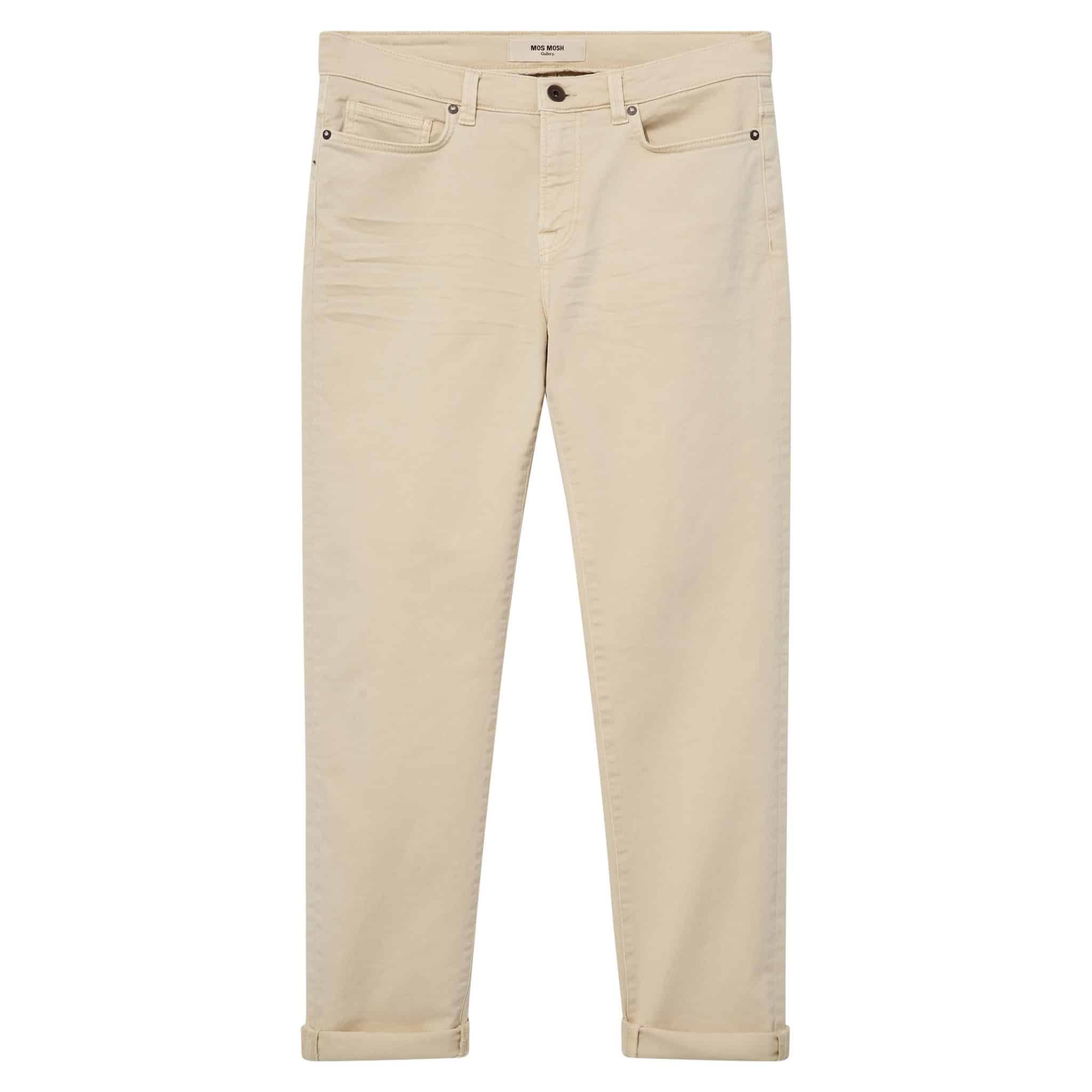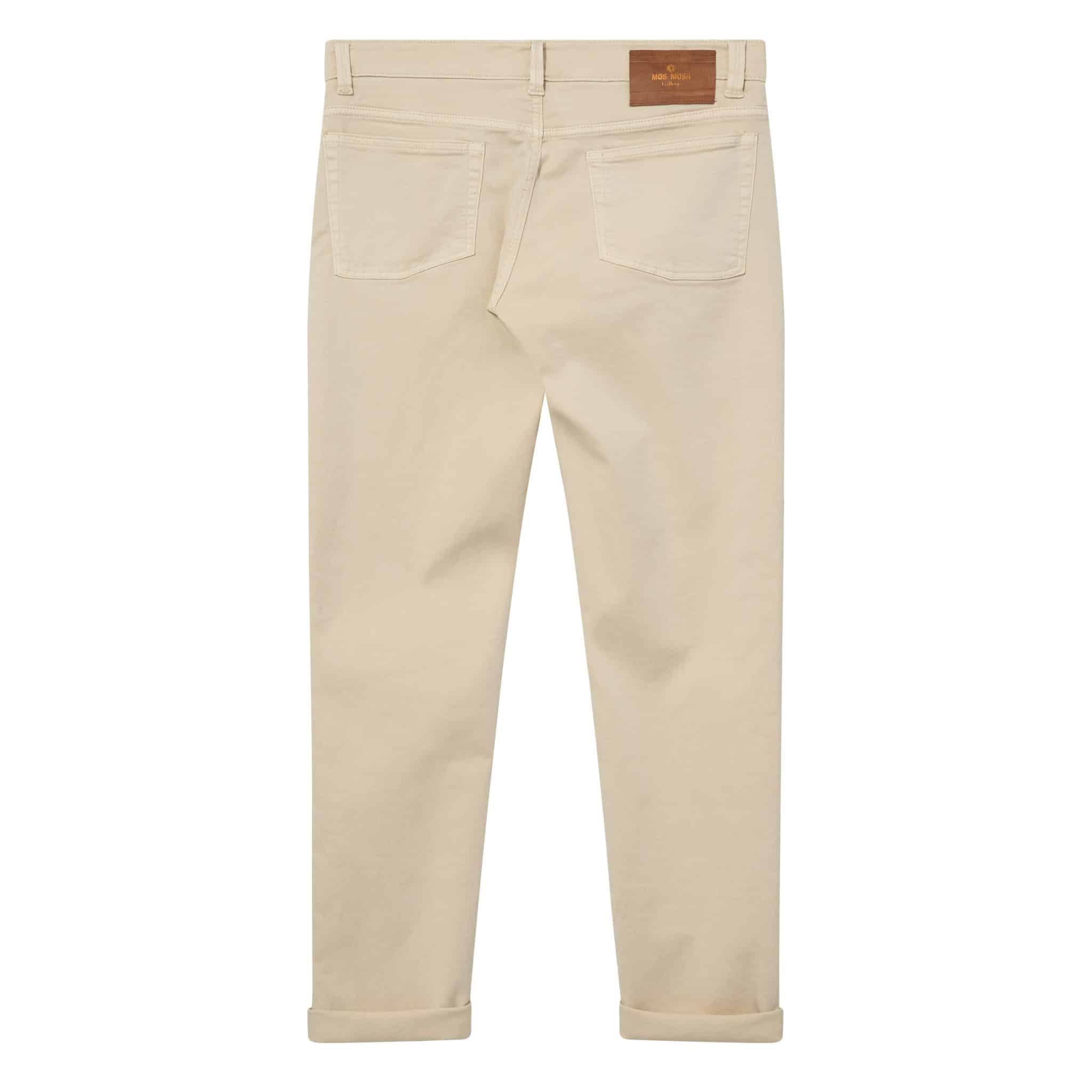 Ensfarvet jeans fra danske Mos Mosh Gallery. Lavet i en komfortabel og fleksibel metervare af bomuld og stretch. Ideel til at give sættet lidt kant og farve.