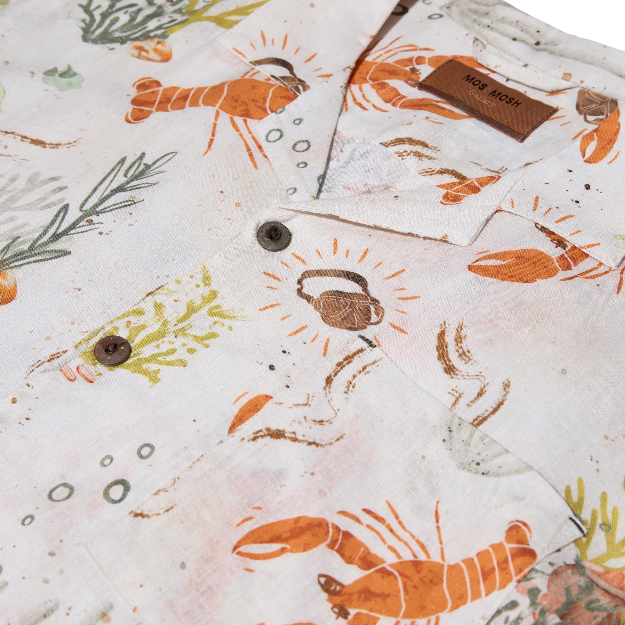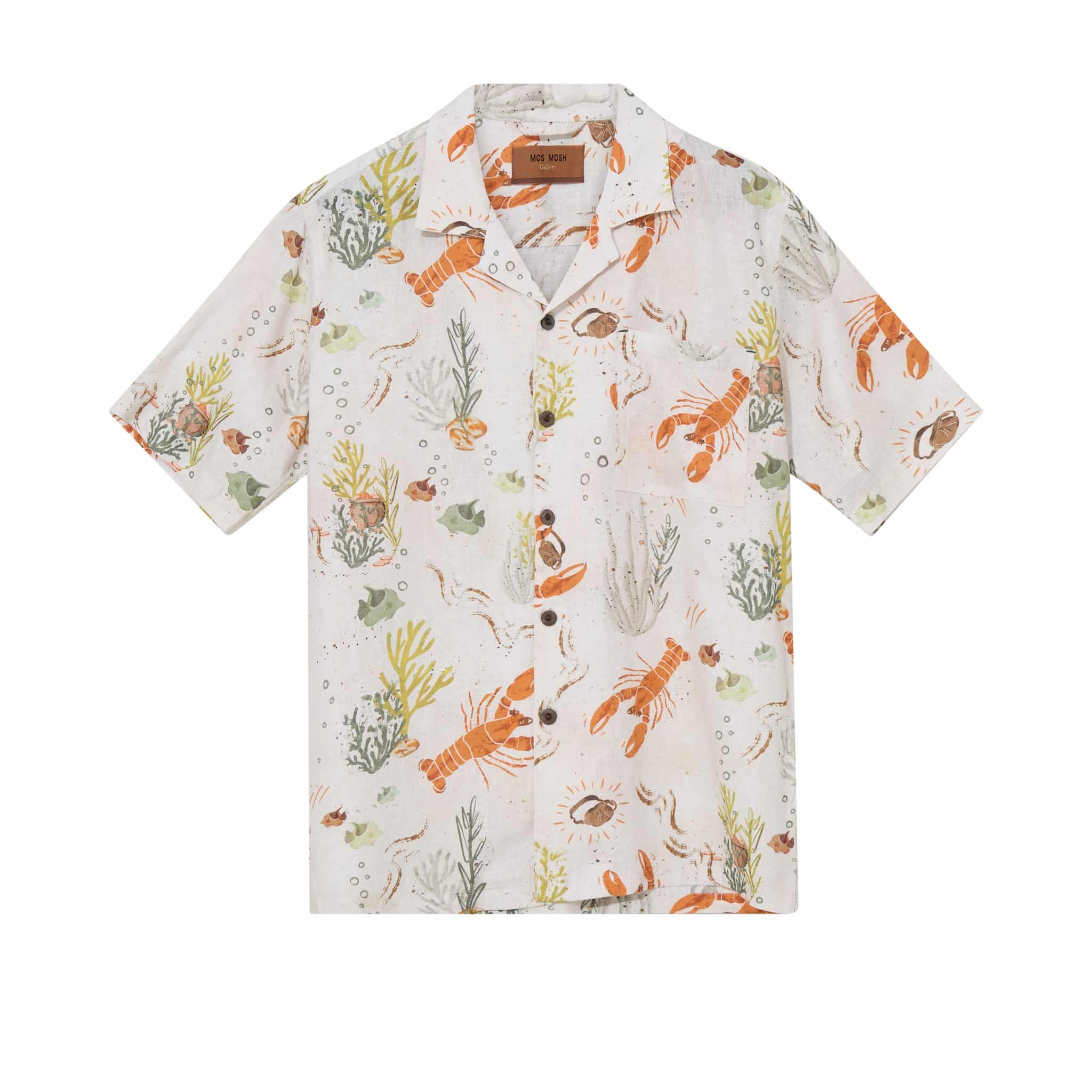 Kortærmet printet skjorte fra danske Mos Mosh Gallery. Lavet i blød metervare af lyocell og hør som sammen med det super cool print, er perfekt til sommeren. brug den gerne sammen med et par chino shorts.