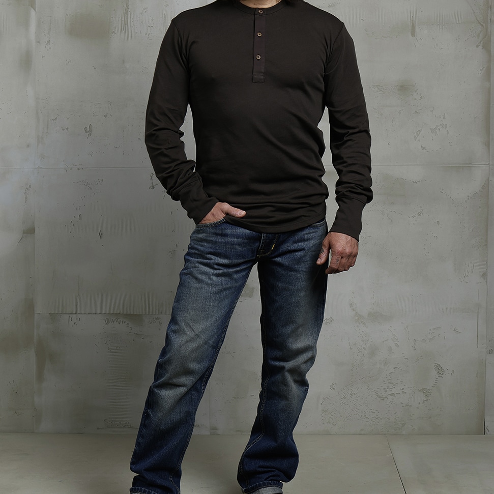 Ensfarvet henley tee fra tyske Pike Brothers. Lavet i en blød og lækker bomuldsmetervare, der giver dig øget komfort. Brug den gerne under en denim skjorte, eller som alternativ til en skjorte under en vest.