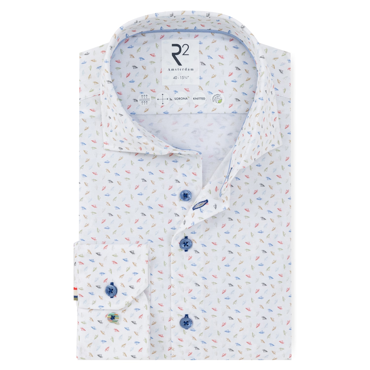 Mønstret skjorte fra hollandske R2 Amsterdam. Lavet i super fleksibel og blød metervare, som gør skjorten enormt komfortabel at have på hele dagen. Ideel sammen med en vest, der giver et cool look.