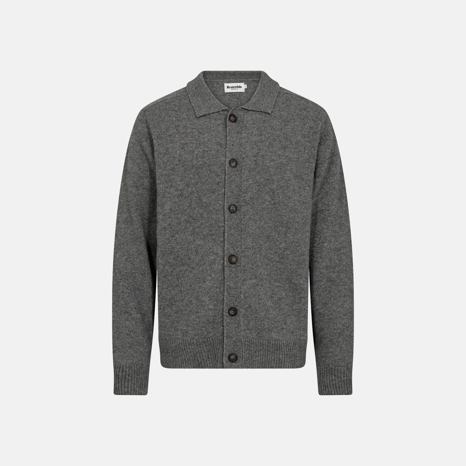 Meleret ulden cardigan fra danske Resteröds Lavet i lambswool der giver en lækker komfort, og en strik der med garanti holder dig varm. Brug den uden på en skjorte, eller med tee under for et mere casual udtryk.