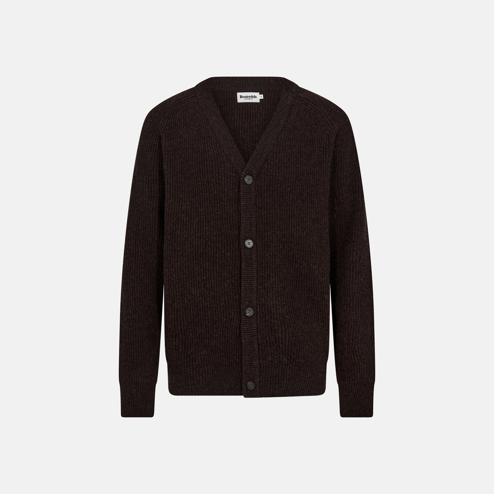 Ensfarvet ulden cardigan fra danske Resteröds Lavet i lambswool der giver en lækker komfort, og en strik der med garanti holder dig varm. Brug den uden på en skjorte, eller med tee under for et mere casual udtryk.