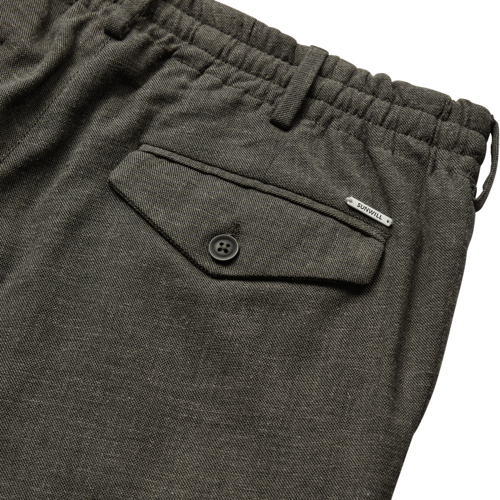 Ensfarvet meleret casual pants fra danske Sunwill. Lavet i en super lækker kvalitet af bomuld og hør, som sammen med den elastiske talje giver en højere komfort. Brug den alene med en hørskjorte til, eller som sæt med den matchende jakke og vest.