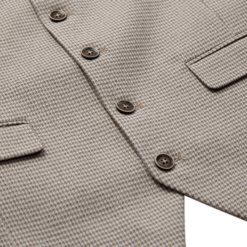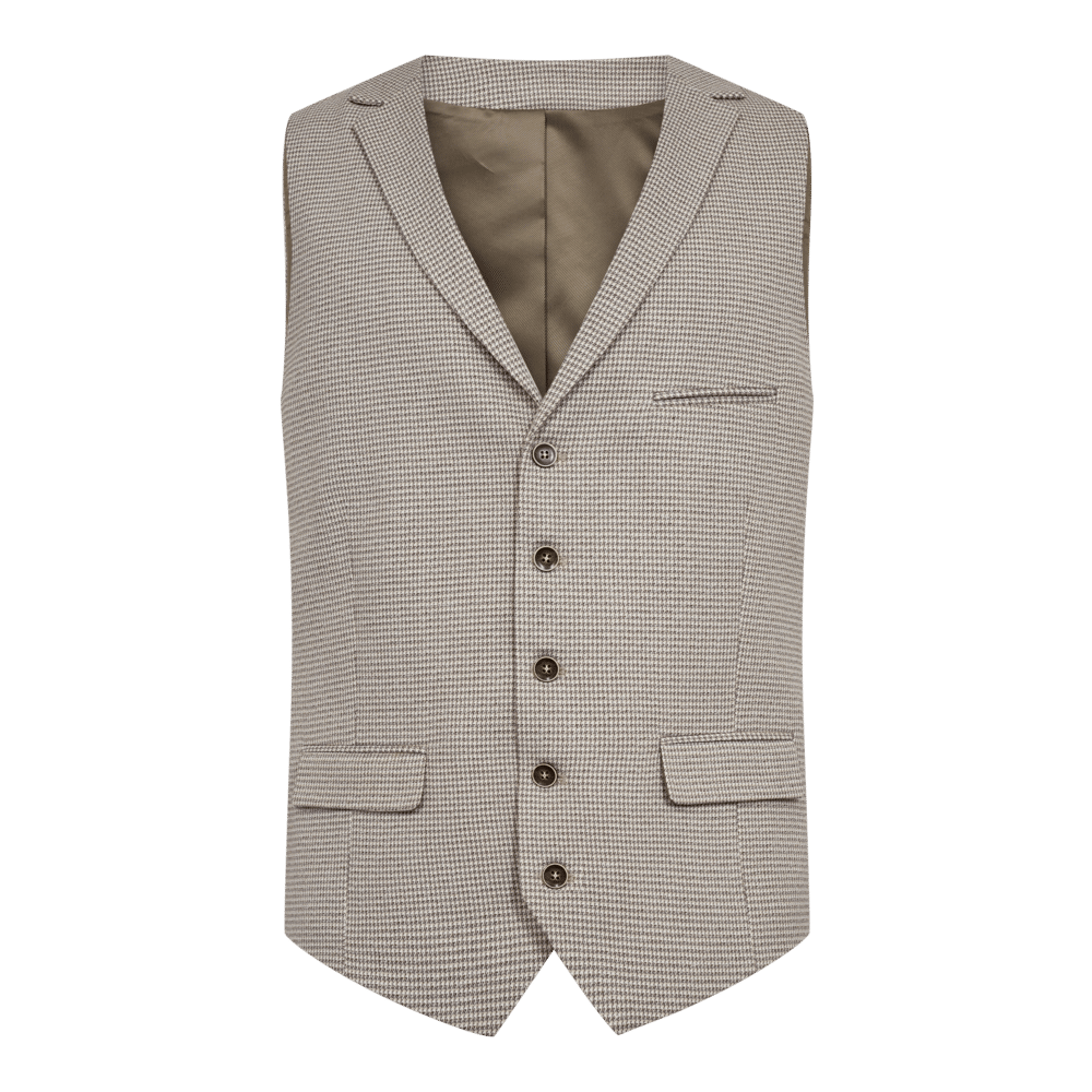 Mønstret vest fra danske Sunwill. Lavet i en let og komfortabelt metervare, som gør den ideel til foråret og sommeren. Brug den gerne sammen med et par lyse chinos og en blå skjorte under.