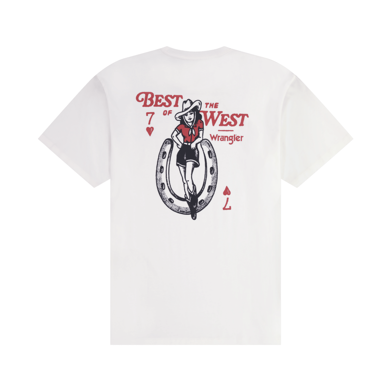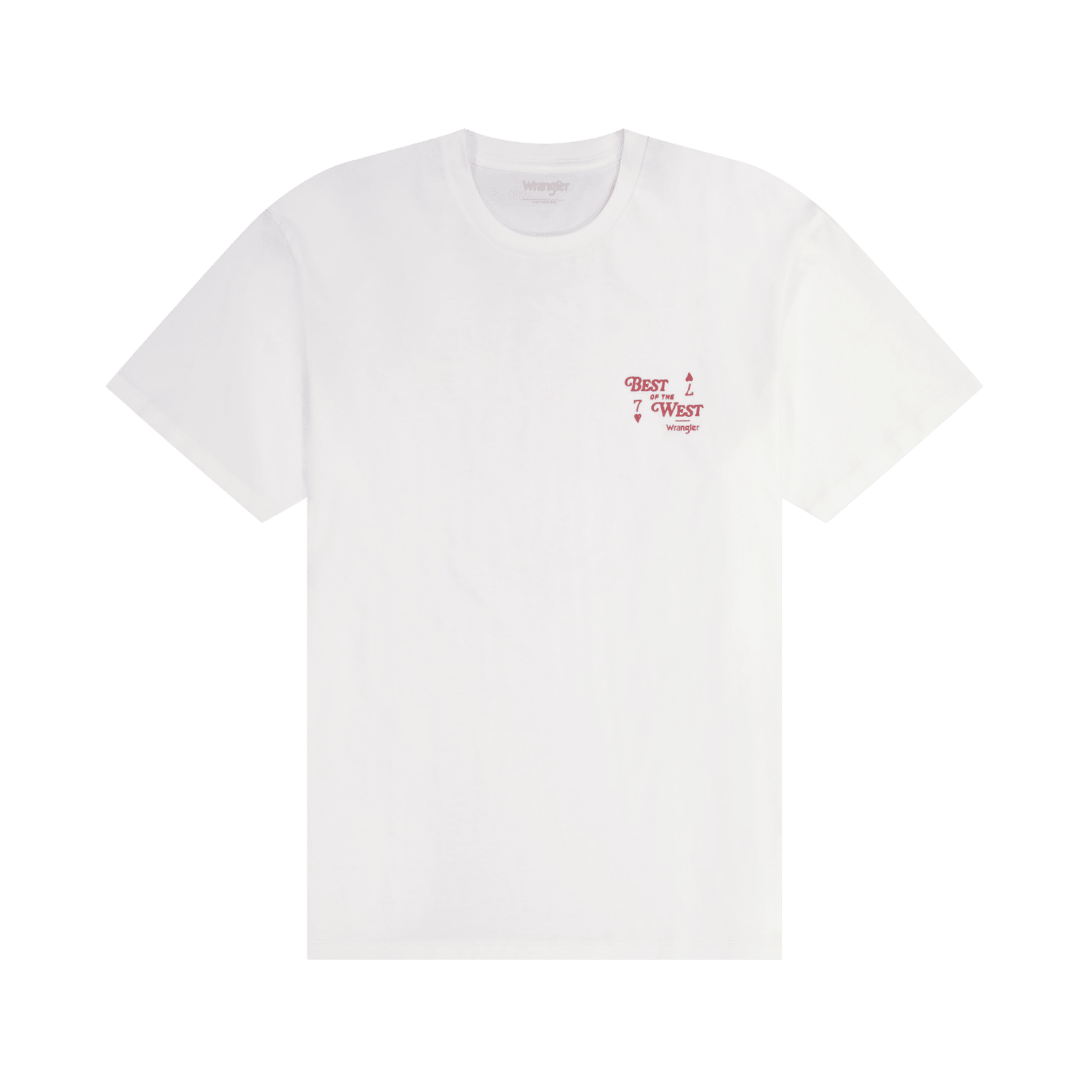 Rundhalset printet t-shirt fra amerikanske Wrangler. Lavet i en ren bomuldskvalitet, og med et flot print på bryst og ryg. Ideel under en denimskjorte.